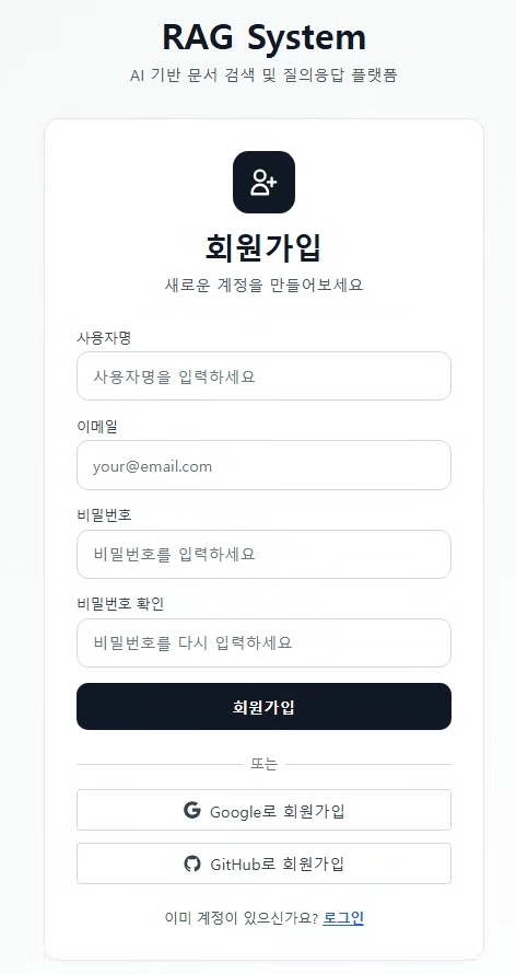 RAG 기반 문서 검색 시스템을 개발하며 현재까지 진행된 기능을 정의하고 추가적으로 개발하야 할 기능등에 대해서 정리하고자 한다. 본 글은 프론트엔드 + 백엔드의 기능이 전부 구현된 기능들만을 정의한다.